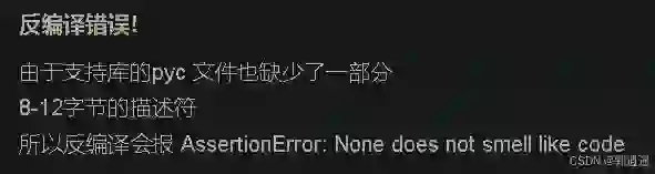 •2 分钟•312 字因为IDA不能识别被Python解释器翻译的pyc文件,我们要使用uncompyle6反编译工具 工具安装: