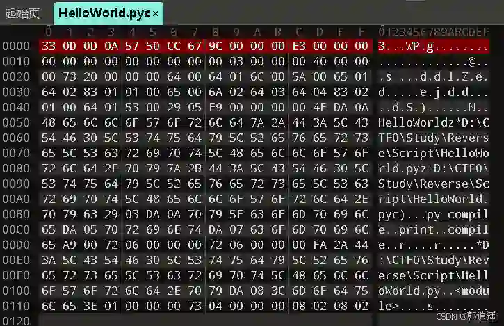 据描述,是文件头缺失,我们简单的创建一个HelloWorld,然后引入py_compile库来将文件编译为.pyc文件,因为文件写着是python3.6,所以应该在3.6环境写代码 HelloWorld.py文件代码