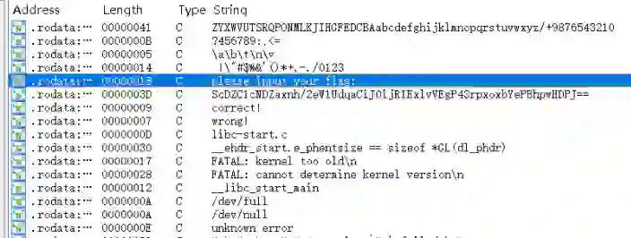 直接用IDA打开,按Shif+F12找到了线索