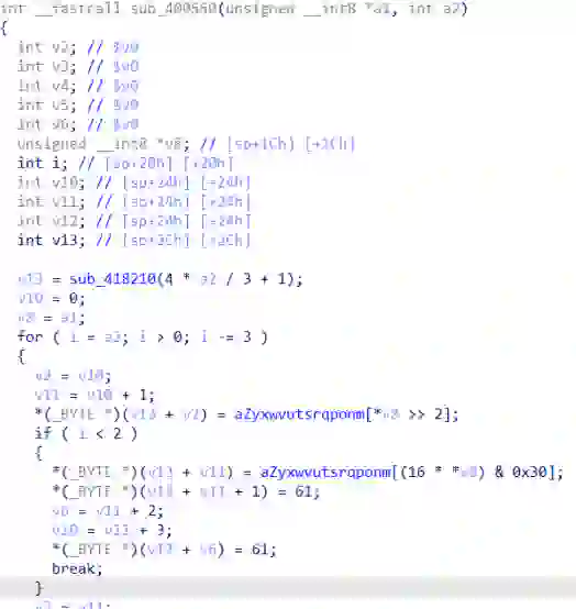 这个函数是一个使用自定义字符集的Base64编码,之前在Shift+F12查字段时查到了一段字符表,应该就是用来编码的字符表