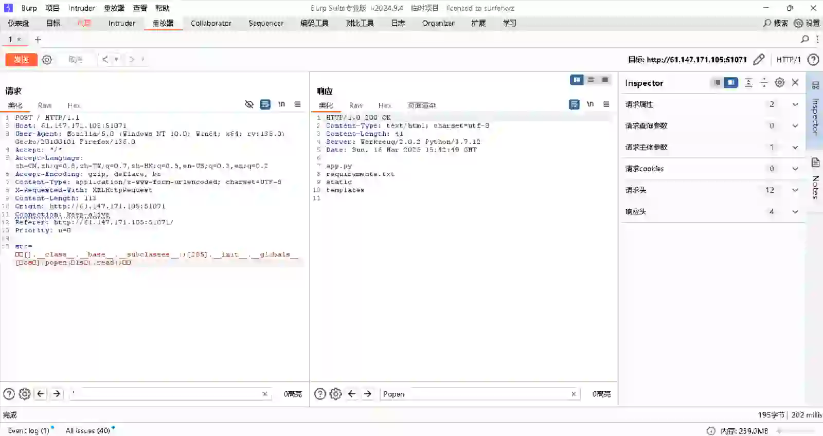 响应里面有 Werkzeug/2.0.2 Python/3.7.12 ,说明运行的是 Flask框架 ,我们可以尝试 SSTI 模版注入