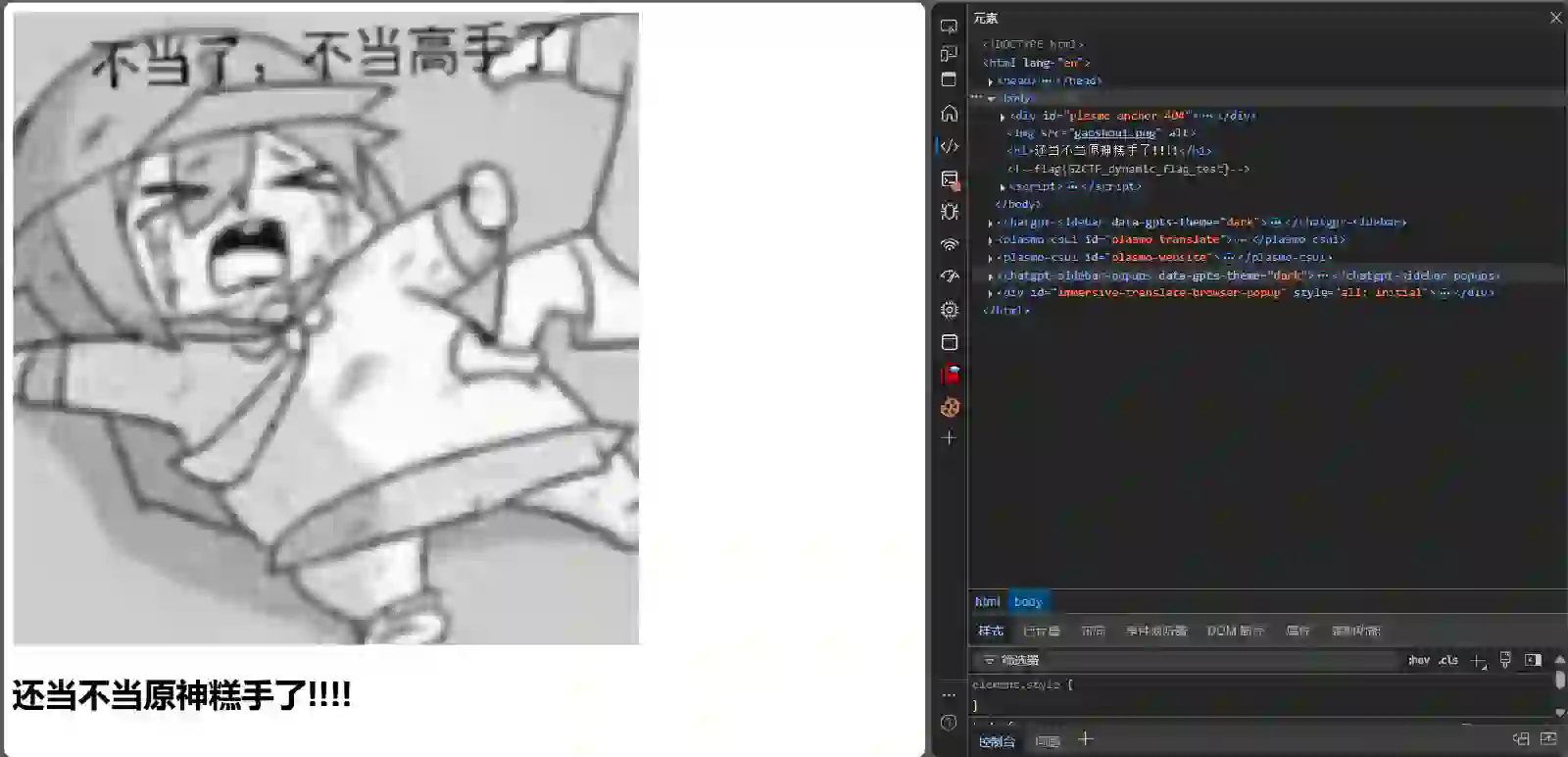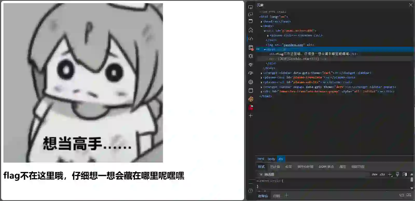 这题没什么好说的,直接按F12就能得到flag,算是签到题