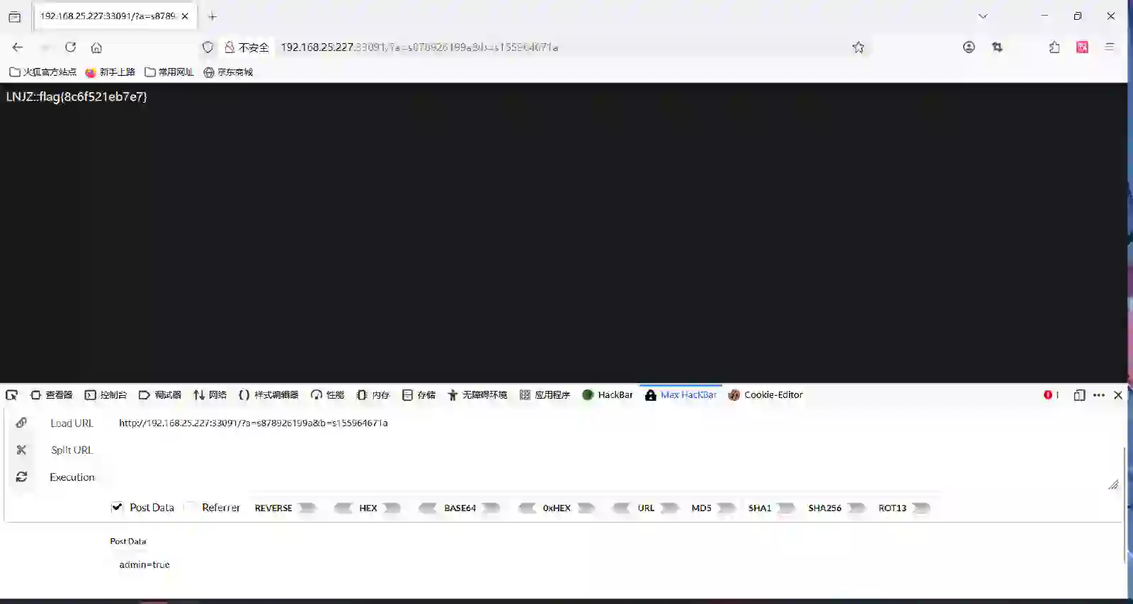 三道关卡,第一个是弱比较,第二个要post admin=true,第三个要保存一个cookie user:admin