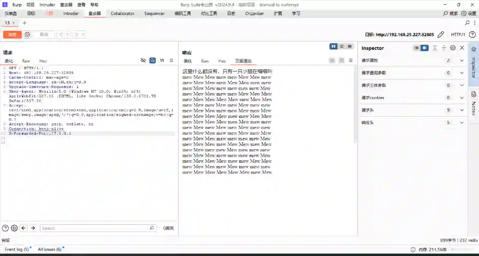 我们用Burpsuite抓包,改一下X-Forwarded-For头