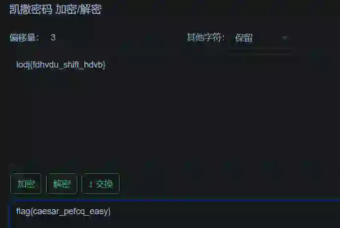 就像题目名字一样,凯撒加密,随便试几个数就出来了