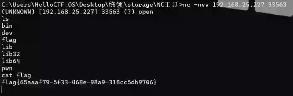 我们直接用nc工具连接,然后查看文件即可得到flag