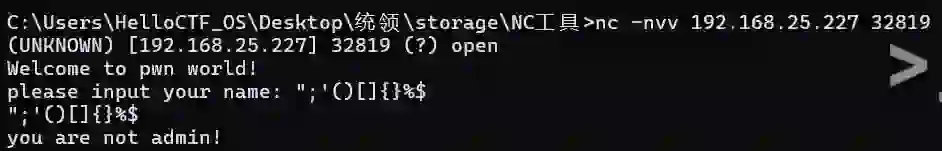 用nc工具连接服务器,提示要输入名字,输入错误,提示不是admin