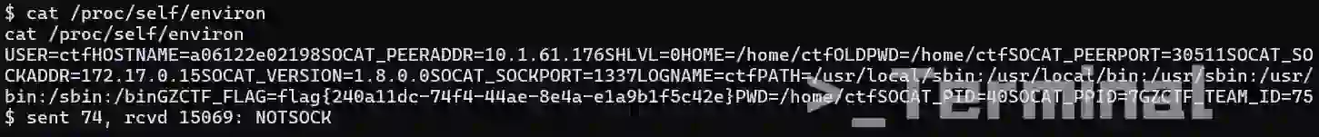 这个flag是假的,看提示和题目名字,我们可以知道flag应该在环境变量里面,我们查看环境变量