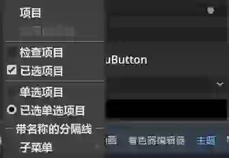 MenuButton节点主要在于item,当我们点击按钮,弹出的菜单项就是我们填写的这些元素,我们可以在主题里面看到这些可以有不同的设置